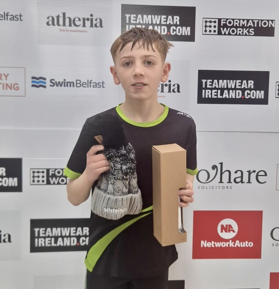 Darragh Collins (15) was in top sprinting form clinching silver medals in the 50m Breaststroke and Backstroke events, as well as a bronze medal in the 50m Freestyle. He came away with four qualification times for the Ulster Senior Long Course Championship later in the year.